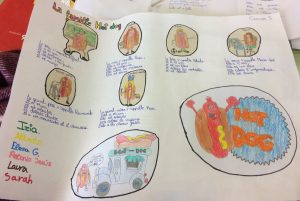 Después, hemos empezado con la Description Physique: color y forma de pelo, ojos, tamaño de boca y nariz, cuerpo,… Para fijar el vocabulario hemos jugado de forma oral a QUI EST QUI? (Quién es quién?). Se lo han pasado genial y hemos practicado de forma oral toda la descripción física.